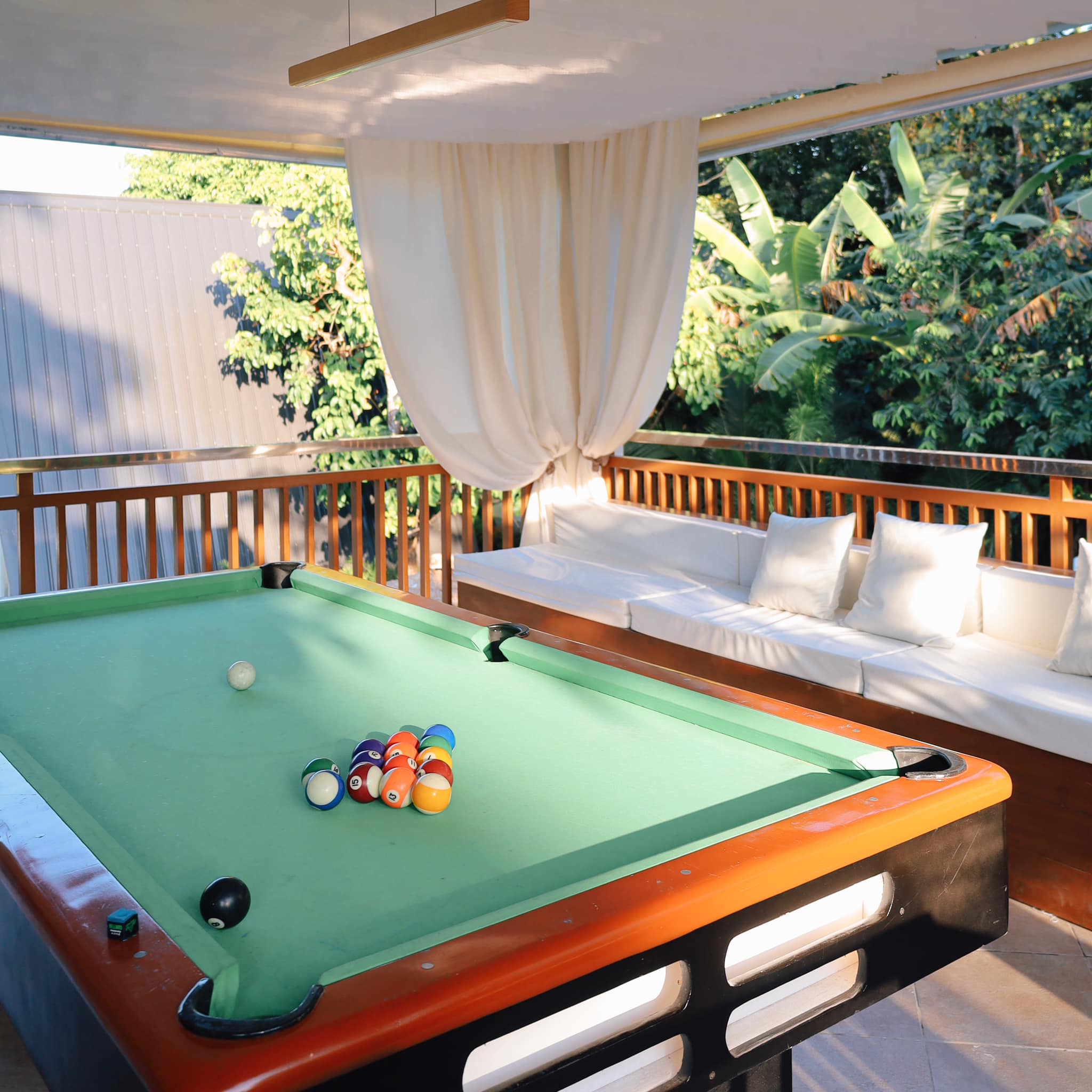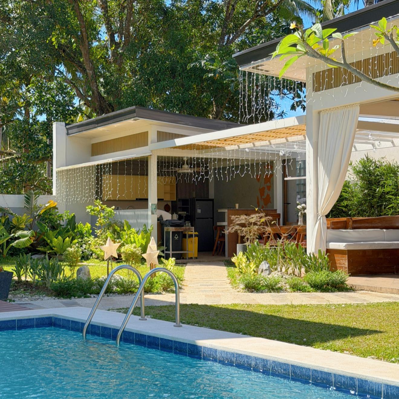Sugod na sa refreshing outdoor pool na pinalilibutan ng lush greenery, mag-chill sa massage chair, o mag-grill para sa ultimate backyard vibes! 🏊♀️ At pag gabi na? Kumuha ng mic para sa unlimited videoke, o hamunin ang tropa sa billiards at board games sa covered gazebo. 🎤🎱